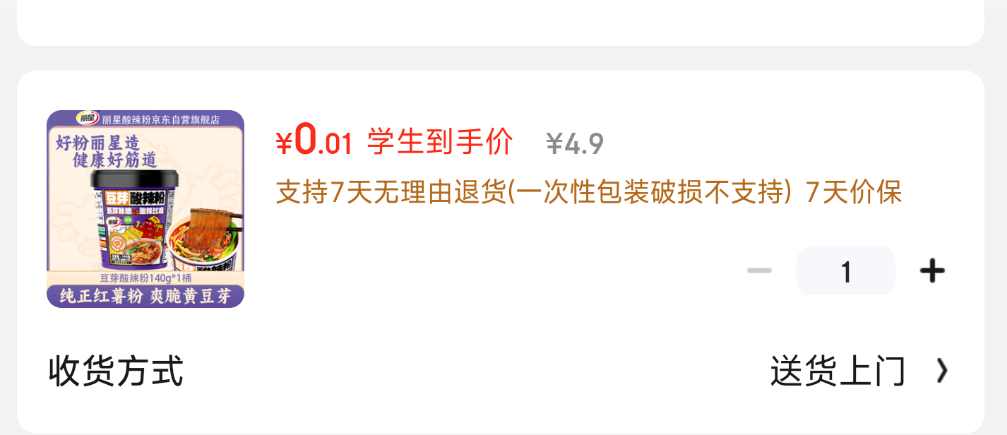 0.01-1💰丽星脆豆芽酸辣粉1桶