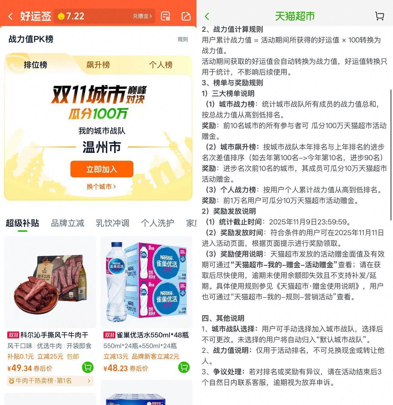 先选城市战队 每天签到得好运值 11.11号瓜分猫咔 感兴趣去玩哈