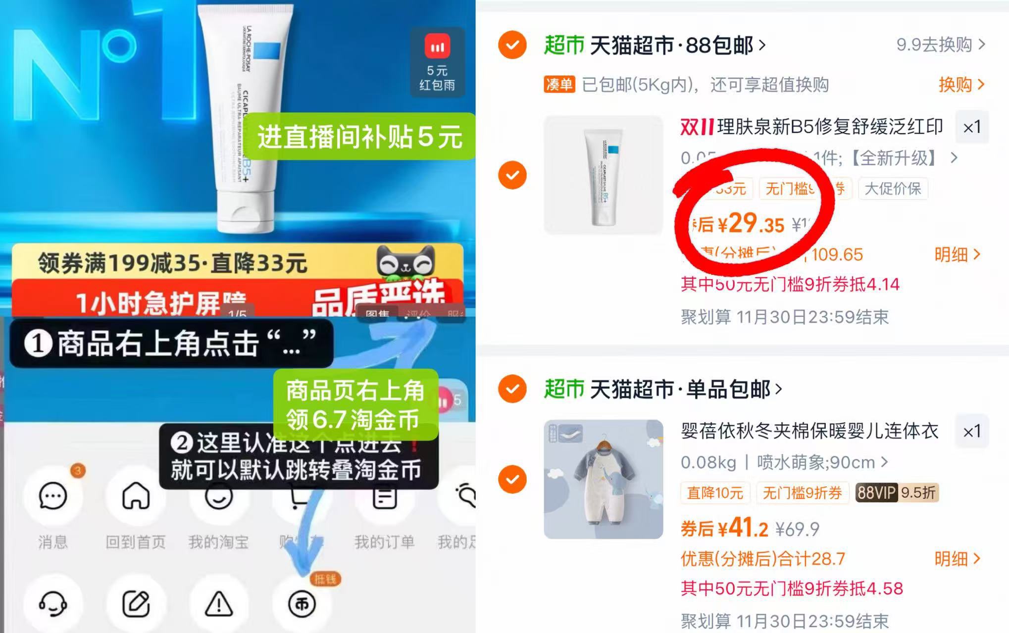 ➌右上角足迹 淘金币进去