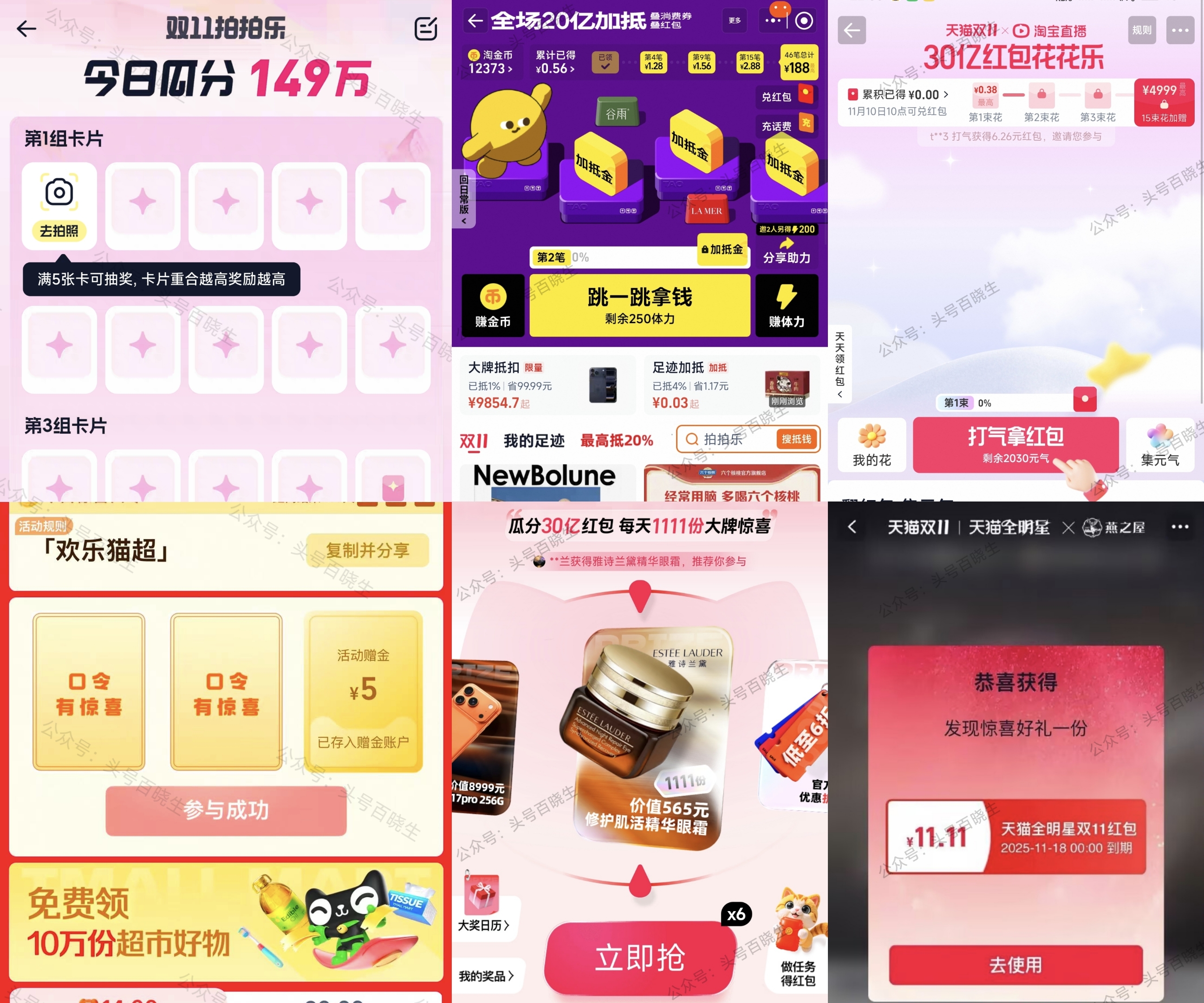 3️⃣天猫全明星 抽0.01实wu/鸿苞
