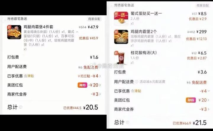 肉霸堡2个+蛋挞2个+饮料 21.5