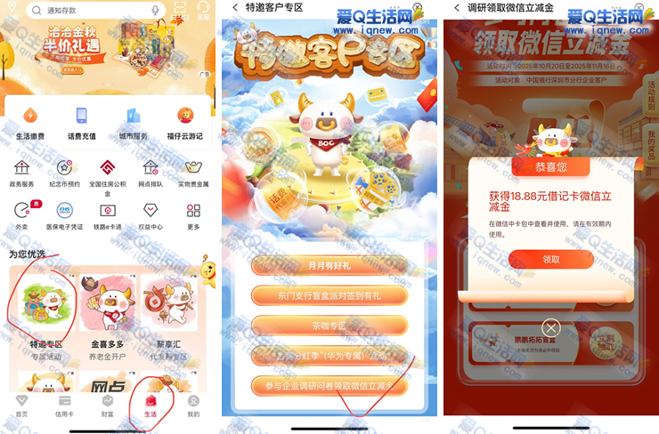 中行-底部【生活】-为你优选-特邀专区-参与企业调研问券领取微信立减金