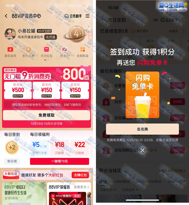 淘宝88VIP签到抽闪购免单卡 亲测秒到