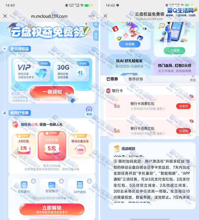 移动云盘新人参与活动,三网用户都可以