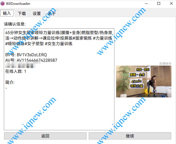 1.输入视频链接(暂时不支持短链接),软件自动识别BV号或者AV号来获取视频信息