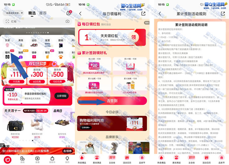 喵街APP-首页【福利】点进去-去签到-打卡20天免费领取奶茶