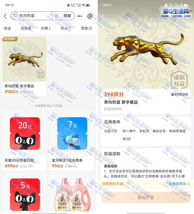 支付宝398积分兑换鲸探奔向豹富数字藏品 ...