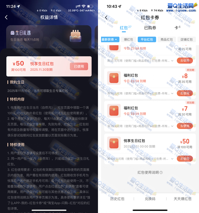 饿了么悦享会员生日礼 领100-50元生日红包 ...