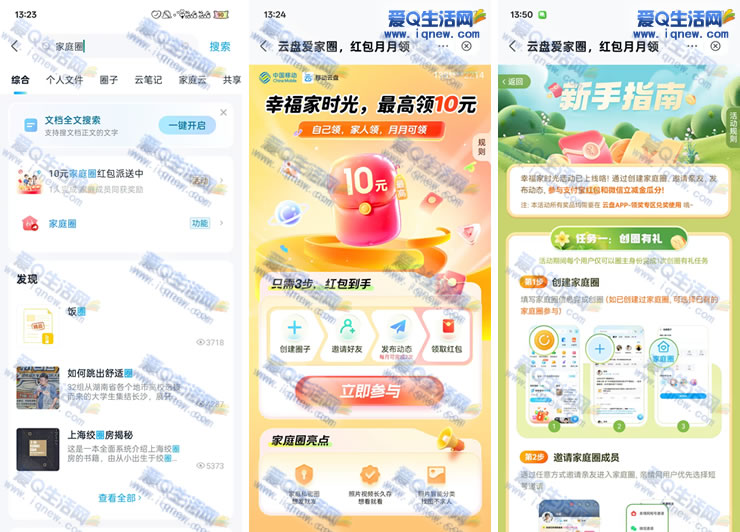 移动云盘创建家庭圈领10元 全网都可以参与 ...