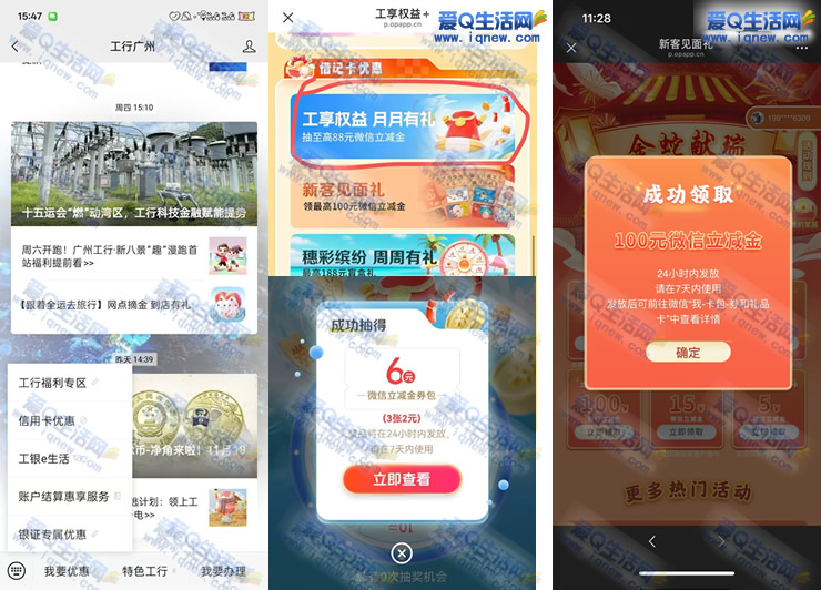 工行广州月月有礼 反馈6+100元微信立减金 ...