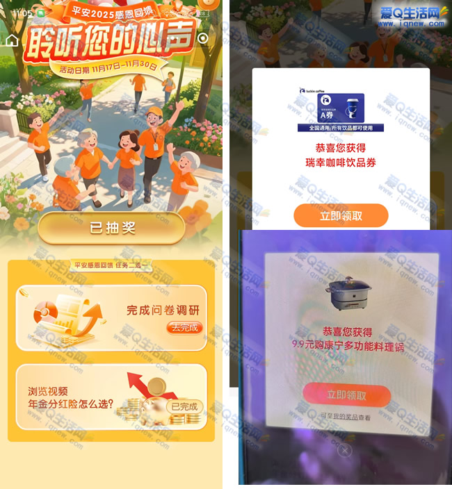 平安保险 抽免费瑞幸咖啡/0.1/9.9元实物资格 ...