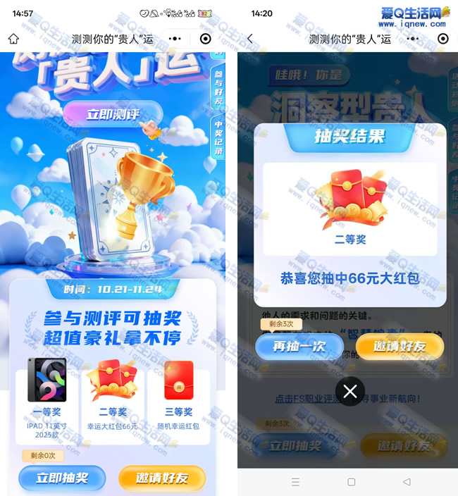微信打开底部地址 顶部 开启测评 测评之后抽奖试试