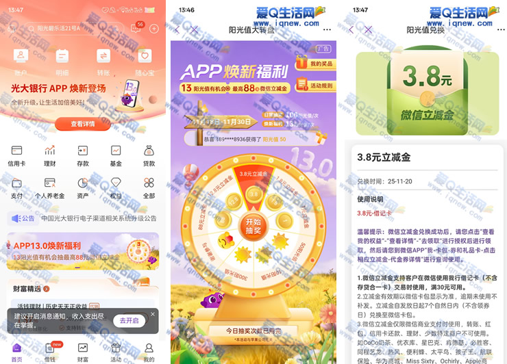 光大APP13.0焕新福利 亲测3.8元光大立减金 ...