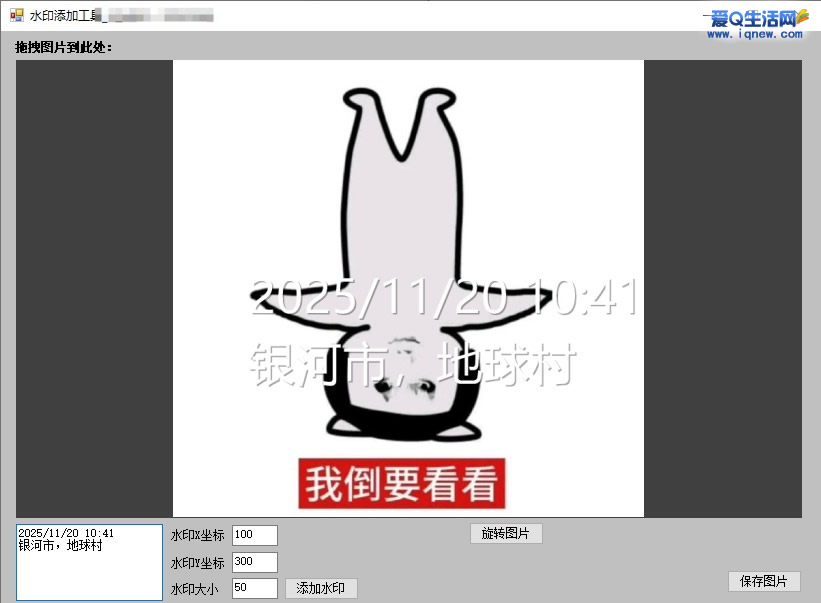 感兴趣的可以下载下来,目前可以自定义时间,文字,还有水印的坐标大小