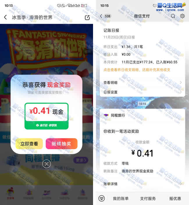 同程旅行APP顶部搜【冰雪季】记得进入活动页面 拆盲盒抽奖试试 没有抽到现金就完成任务抽奖