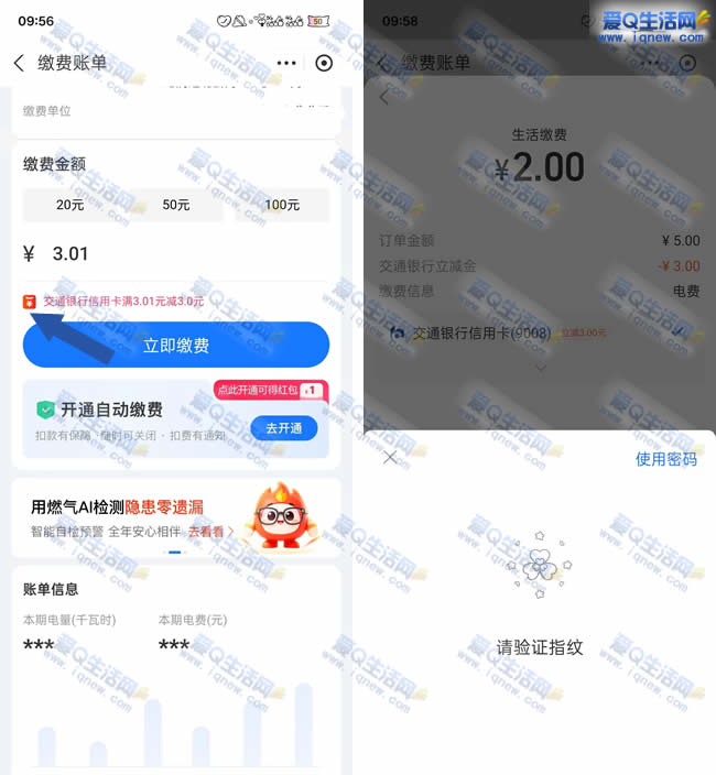 支付宝APP搜【立减金】-点击【支付宝立减金】下拉看看有无 交行信用卡缴费满3.01-3元 点击去缴费-缴费你们当地最低的缴费门槛 用交行信用卡支付 会显示立减3元