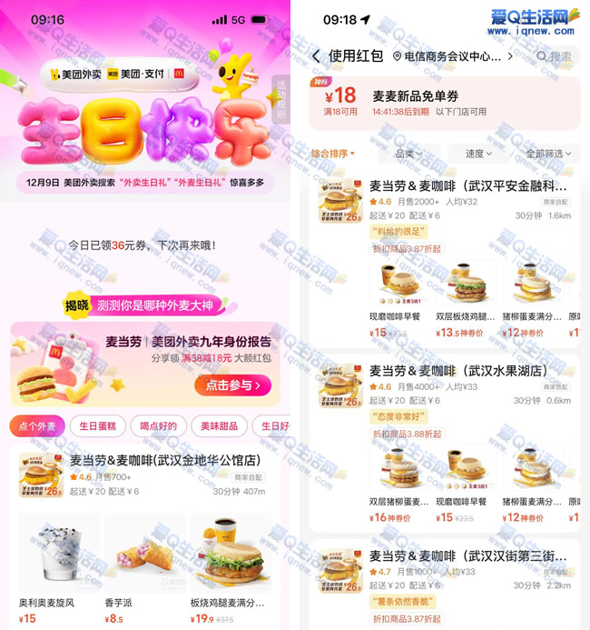 1.如本月生日 页面可直接领 麦当劳新品18-18兔単埢