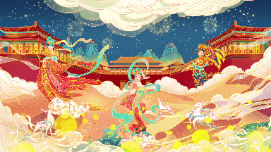 国潮敦煌中国风祥云飞天古风LED背景视频素材