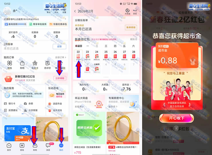 分期乐每日领超市金红包 亲测0撸3个实物 ...