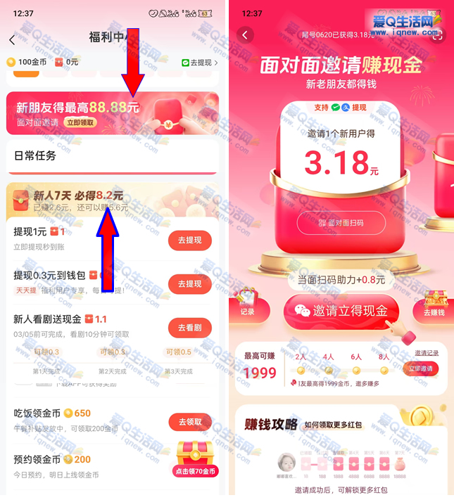 福利中心-新人7天必得8.2元 -邀请新人参与也有现金