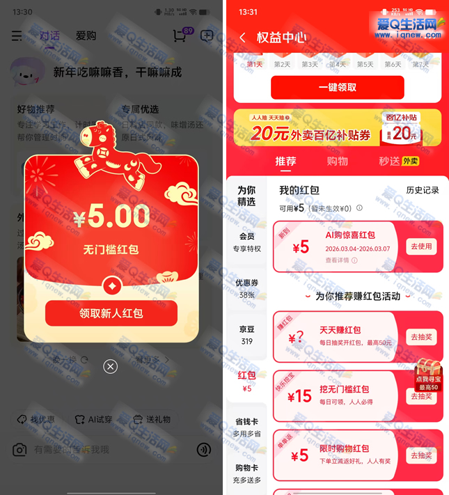 京东AI购APP-登录后新人自动弹5元无门槛红包