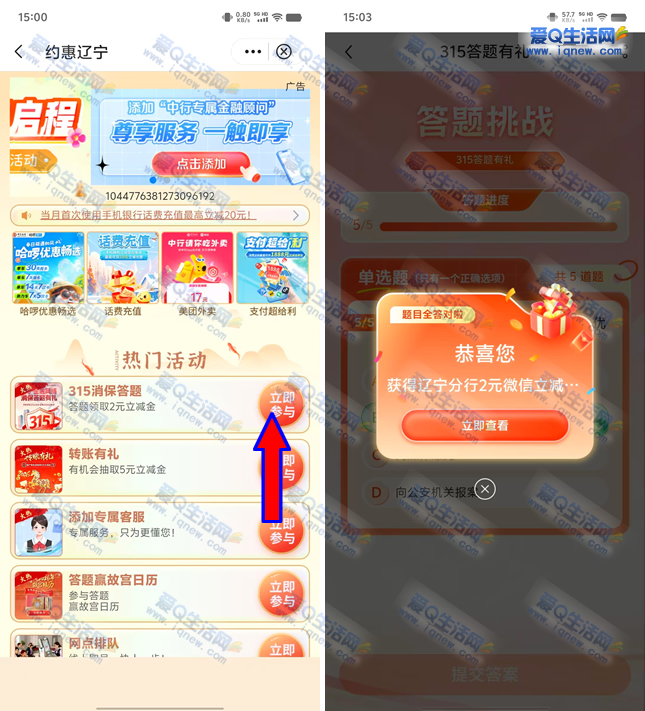 中行315答题有礼 亲测2元通用立减金